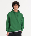 Soft cotton faced fabric. Brushed back fleece. Drop shoulder style. Double fabric hood with self colour drawcord. Front pouch pocket. Ribbed cuffs and hem. 80% ringspun cotton/20% polyester.* 700g